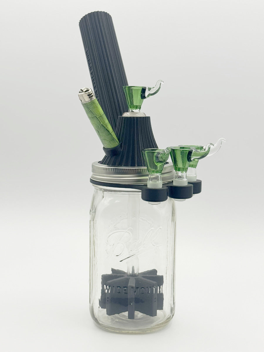 The Three Bowl Holder attaches to the top of any wide-mouth mason jar and provides parking for an extra three bowls. Neat!